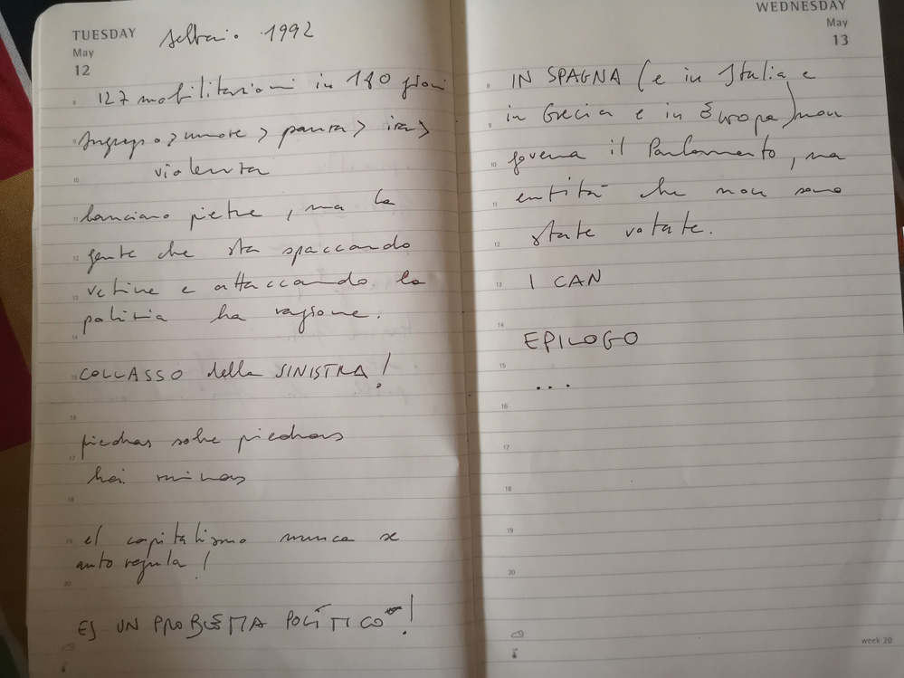 Ci sentiamo a disagio nel pensare che quelle pietre lanciate durante le manifestazioni del febbraio 1992 che porteranno all’incendio del Parlamento regionale di Cartagena, sono pietre giuste.